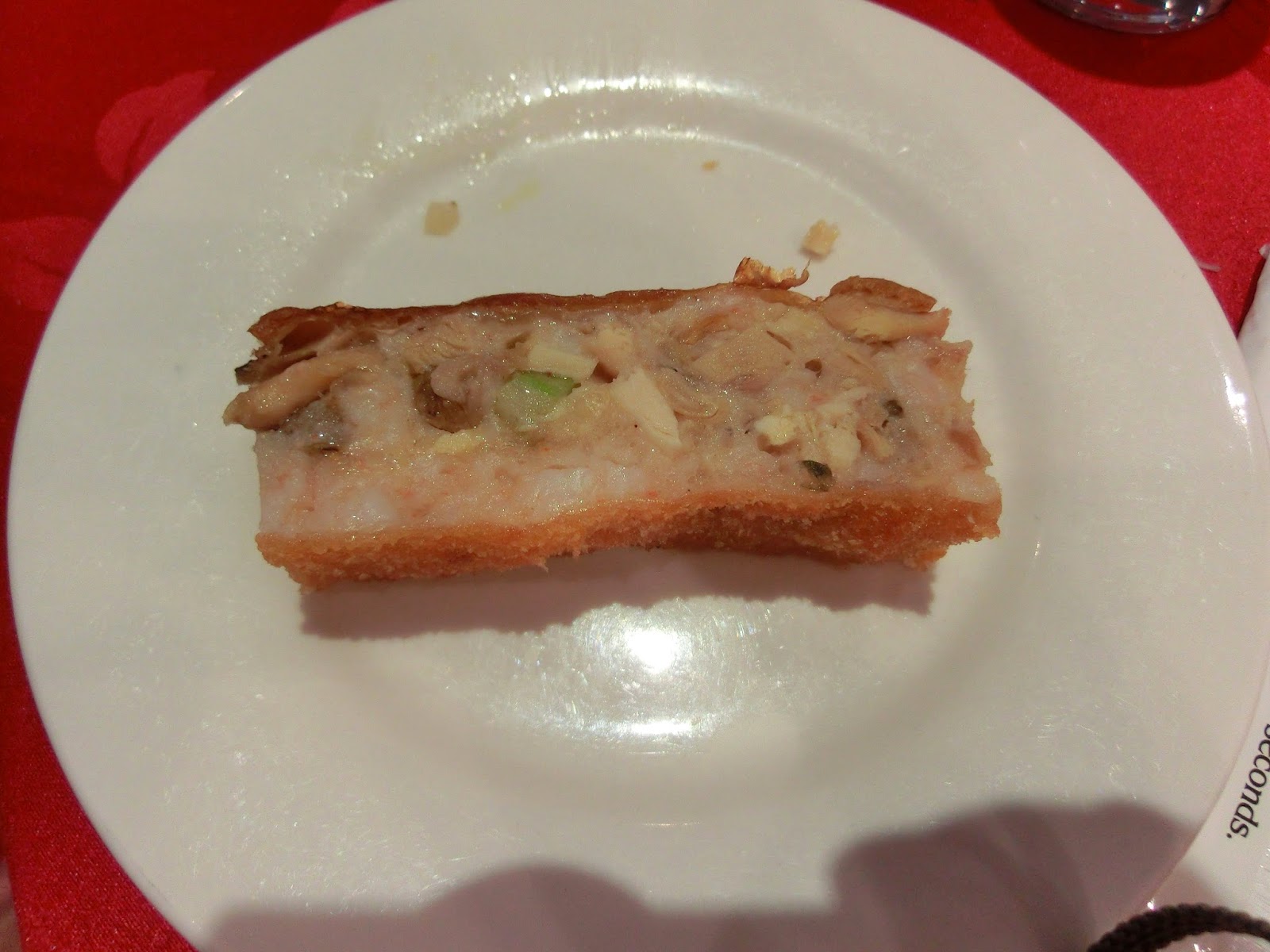 大槪製法好似係... 成隻雞去骨起肉留番完整的 "一隻雞皮" 釀番尐蝦膠+雞肉入去... 空口食覺味道稍鹹, 大致上都算唔錯。 |